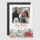 Bright, audacieux et coloré bande de poinsettias de Noël blanc et rouge aquarelle et feuillage avec personnalisable Joyeux texte de Noël et modèle photo.
