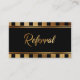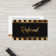 Cet élégant design présente une brillante feuille d'or et des accents noirs audacieux. Les bords supérieurs et inférieurs d'une bande verticale audacieuse apparaissent au-dessus et au-dessous d'une large bande noire à travers le centre, qui est bordé de doubles bandes dorées. Au centre du design, dans une jolie police de caractères moderne, est une superposition graphique typographique qui dit "Referral". Cette couche de texte graphique a été embellie avec le même effet or que j'ai utilisé dans les bandes et les bordures. Au verso, j'ai mis en place tous les champs de modèle que vous aurez besoin d'offrir les détails et les termes à vos clients. Utilisez les espaces fournis pour ajouter vos propres détails et apporter les changements de libellé nécessaires. Vous pouvez également cliquer pour customiser plus loin si vous souhaitez modifier les polices, les tailles ou les repositions d'éléments. // Idéal pour les propriétaires de salon, les coiffeurs, les esthéticiennes, les manicuristes et les techniciens de l'ongle, les maquilleurs, les massothérapeutes, les entraîneurs personnels, et beaucoup d'autres dans les secteurs de la guérison et des services personnels qui apprécient honorer les aiguilles d'affaires. // N'hésitez pas à contacter si vous avez des demandes spéciales ou avez besoin d'aide customisée. // Conçu par Melody Watson pour Paper Muserie.