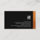 Ce remarquable carte de visite noir professionnel et audacieux dispose d'une bande de grunge en cuivre sur la bordure inférieure. Votre nom et votre titre apparaissent juste au-dessus de cette bordure à motifs, sur un arrière - plan noir jet. Le même thème à motifs apparaît au dos de la carte, sauf que la bande est sur la bordure droite. Le logo et les coordonnées de votre entreprise apparaissent dans la section noire de la carte. Ce design carte de visite fait une première impression frappante et est parfait pour des thèmes à fort impact, actif, mode, style, chic, professionnel, moderne, sophistiqué, abstrait.