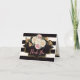 Cette carte de remerciements de douche nuptiale chic correspond à la collection d'invitation de douche nuptiale ci-dessous et dispose d'un large motif de rayures horizontales en noir et ivoire avec une zone de texte décorative en noir avec deux bords extérieurs en or. Un bouquet floral coloré se trouve au centre supérieur et en bas à droite de la zone de texte à l'intérieur, avec de jolis roses en crème, ivoire et rose, avec des lys péruviens oranges et un feuillage vert. L'intérieur de la carte est en ivoire et a de petites bordures de haut et de bas en noir avec des bandes d'or simulé sur la largeur de la carte. Vous pouvez customiser le message de remerciement pour ajouter votre propre verset ou un autre texte ou supprimer le texte modèle pour laisser la carte vide pour écrire à la main à la place. C'est une façon parfaite de conclure votre mariage, votre wedding shower, ou tout autre événement lié au mariage.
