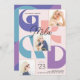 Célébrez votre diplômé avec cette carte de faire-part Retro 3. Le design est composé d'une typographie "GRAD" audacieuse dans des tons violets, rose acajou et turquoise, dans une mise en page de collage moderne. Pour plus d'informations ou pour ajouter des informations sur l'invitation, il est possible d'ajouter du texte à l'arrière.