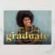 Avec un audacieux "diplômé" rétro en papier d'aluminium. ce carte photo unique est la façon parfaite d'annoncer votre diplôme à la famille et aux amis. Le style vintage est subtil et simple pour ce faire-part de graduation et parfaitement sur la tendance pour cette classe de graduation. Le dos de cette carte est un gris-fusain classique avec une texture tachetée. Trouver plus de couleurs et de styles dans la collection de Lea Delaveris Design.