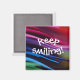 Cet aimant carré coloré vous offre un accueil chaleureux. Nous avons tous besoin d'un petit encouragement, n'est-ce pas ? Affichez-le sur votre réfrigérateur ou votre meuble à l'emploi ou sur la porte du casier à l'école ou à la salle de sport. Il est audacieux et éclatant et vous accueille avec un sourire coloré. Ravi de donner à un ami aussi.