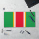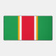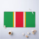 Ce design coloré présente des rayures verticales blanches et jaunes dorées qui soulignent une bande centrale rouge vif. Les rayures extérieures verdoyantes adjacentes complètent la composition sportive.