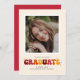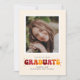 Ce faire-part de graduation d'inspiration rétro amusante comprend le mot "diplômé" écrit dans des tons gras de rouge foncé, orange et jaune doré. Il a de l'espace pour une photo à l'avant comme à l'arrière. L'arrière comprend également de l'espace pour plus de texte.