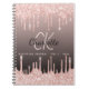 or rose, fausse parties scintillant rose goutte à goutte, la peinture goutte à goutte. Noir, brun, café latte couleur ombre arrière - plan. Personnalisez et ajoutez votre nom, et des initiales monographiques et un titre, journal de gratitude. Le nom est écrit avec un script de style moderne écrit à la main. Lettres noires et roses de couleur or.