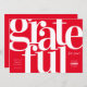Envoyez des voeux de vacances aux clients et aux clients d'affaires avec cette carte de vacances d'affaires moderne et typographique. Il présente un accueil "reconnaissant" typographique et audacieux. Personnalisez cette carte avec votre nom d'entreprise, logo (clair ou blanc), message et année personnalisés. Ajoutez un message personnalisé et un logo à l'arrière de la carte. Choisissez parmi un large éventail de types de papier. Sélectionnez la carte rectangulaire de 5 po x 7 po ou ajoutez une forme de bordure de teinture coupée. Des éléments correspondants sont disponibles.