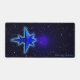 Une image fractale 3D simple et bleu, ressemblant à un vaisseau spatial stylisé, superposée à un arrière - plan étoilé. Des anneaux concentrés (ondes de gravité ?) sortent de l'engin spatial pour pénétrer dans le vide apparemment vide de l'espace. Une aura bleu clair entoure l'engin spatial, peut-être le résultat d'un déplacement plus rapide que la lumière. Ajoutez votre propre texte.