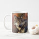 Photographie de loup gris recadrée à la tête et à la poitrine imprimée des deux côtés de la tasse. Photo de Gary Kramer, USFWS.