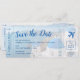 Carte d'embarquement billet d'avion destination mariage enregistrer la carte de date pour un Mariage de Santorin en Grèce avec l'emblématique église à dôme bleu surplombant la mer d'Agée et les falaises. Utilisez l'outil de conception pour quitter la conception de manière avancée, par exemple en modifiant la couleur du texte, la police et le placement, ainsi que la couleur de l'arrière - plan de carte et de l'avion. Contactez-moi pour coordonner les articles que vous cherchez, ou utilisez le "transférer cette conception" pour créer votre propre article sur Zazzle.