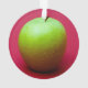 Photo d'une grosse pomme verte against red background.