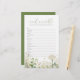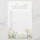 Surprenez et enchantez la maman-to-be avec le charmant Green Baby In Bloom Fleur sauvage Word Scramble Game. Ce magnifique jeu de baby showers propose des mots sur le thème du bébé, entourés de motifs floraux vintages, pour que vous puissiez vous détendre avec enthousiasme. Regardez leurs visages s'illuminer alors qu'ils ne sautent pas les mots comme la couche, l'échelle et la bouteille. La belle oeuvre d'art fait de ce jeu un souvenir spécial pour l'invité d'honneur. Apportez une touche de beauté de la nature à votre baby shower avec ce mot animé brouillon. Les parents et les clients sont sûrs de passer un bon moment de floraison !