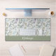 Elegant Green Blue Botanical Watercolor Monogram Name Desk Mat.