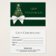 Luxueux et riche design de vacances avec une splendide silhouette d'arbre de Noël avec des flocons de neige dorés. Décoré d'un arc cadeau en or blanc sur un arrière - plan vert luxuriant. Ce certificat cadeau festif est parfait pour votre petite entreprise ou pour offrir à vos amis et à votre famille.