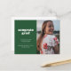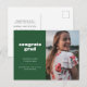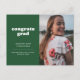 Annoncez la grande réussite de votre diplômé avec cette faire-part et cette invitation de graduation simple mais élégante. Il comporte les mots "grad de félicitations" dans une police de style rétro blanc sur un arrière - plan vert ainsi que l'espace pour une photo sur le devant. Utilisez le verso de la carte postale pour obtenir des détails sur la célébration pour votre diplômé.