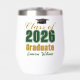 Personalize your own green and gold high school Class of 2026 graduate wine tumbler for a high school or college graduation party. Cool varsity letters for the year on a great custom commemorative keepsake for seniors.
