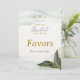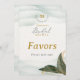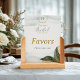 Elégante Fête des mariées Verdure Or Aquarelle Privilégie La Carte Tablette. Cette superbe carte à plateau est le moyen idéal d'ajouter une touche personnelle et belle à votre table de favoris. Conçu pour s'adapter parfaitement aux supports de cartes ou de clips (non inclus), son design double face comporte une image miroir sur le dos. Cela garantit un affichage sans faille sous tous les angles, ce qui en fait une pièce vraiment complète et élégante. La carte est magnifiquement personnalisée avec un compte à rebours final au grand jour dans un style unique sur le dessus. Ci-dessous, le nom de la future mariée est présenté, suivi par "Fête des mariées" dans une élégante typographie. Le mot "Favors" est placé dans un script en gras, et une instruction polie, "Prenez-en un !", est ajoutée pour guider vos invités. Tout cela est mis en regard de l'étonnante aquarelle verdure et or design de la collection. Cette carte élégante est à la fois un joli décor et un message clair et instructif, assurant chaque détail de votre célébration est à la fois sophistiqué et sans effort.