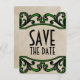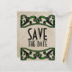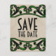 Élégante et chic perruques gothiques Enregistrer la date Carte postale avec un vintage arrière - plan beige imitation texturé et bordures fleuries tourbillonnantes en vert foncé. Ce design ancien est parfait pour annoncer votre mariage gothique ou vintage. Facile à customiser, il suffit d'ajouter les détails de votre mariage dans les champs de texte fournis. Cliquez sur "Customiser" pour trouver d'autres options de personnalisation.
