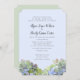 Joli vert et bleu hydrangea fleurs invitations mariage avec un endroit pour les noms de tous les parents au sommet. Incluez également l'adresse du lieu de réception (si différente de la cérémonie) ou imprimez simplement "réception à suivre". Les polices modernes sont utilisées en modèle de texte avec les noms en écriture manuscrite. Couleur vert sauge clair à l'envers. Les couleurs et le libellé peuvent être modifiés - veuillez me contacter pour obtenir de l'aide et pour faire correspondre RSVP et d'autres éléments pour votre événement.