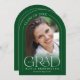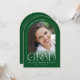 Ce faire-part de graduation minimaliste en arc vert est doté d'une arche délicate, de 2 modèles photo et d'une élégante typographie moderne.
