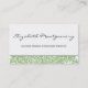 Ces Cartes de visite professionnels de massage Motif simple blanc et vert Paisley ou d'instructeur de yoga moderne sont un choix cool et sophistiqué pour le spa ou professionnel de la thérapie. Un design géométrique unique pour les thérapeutes et les instructeurs contemporains, cet élégant carte de visite est également une carte de rappel de rendez-vous. Un très bon choix pour un salon ou un styliste, ou pour ceux qui veulent une carte de visite simple et élégante.