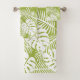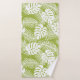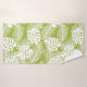 Serviette de bain dressée avec un motif extensible de grands feuilles de palmiers sur un arrière - plan vert olive. Moderne tendance et tropical.