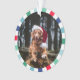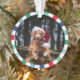 Ornement animal de compagnie pour Noël avec la photo de votre chien à l'intérieur d'un cadre rayé d'entrée en blanc, bleu, et différentes nuances de vert. Ajoutez le nom et l'année à l'arrière sous un empreinte de patte.