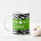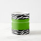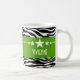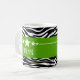 Tendance et moderne Sassy Star Zebra Mug avec un arrière - plan design en zèbre noir et blanc et une bordure verte chartreuse ornée d'un motif d'étoile amusant. Ce design girly peut être customisé avec le texte personnalisé de votre choix. Cliquez sur "Customiser" pour trouver d'autres options de personnalisation.