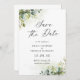 Green Save The Date Card. Cette invitation à la douche nuptiale élégante et élégante présente de magnifiques aquarelles peintes à la main. Trouvez les articles correspondants dans la Collection Florale Eucalyptus de verdure.