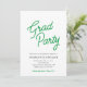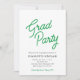 Cette invitation à la fête de remise de diplômes présente un design simple agrémenté d'un texte en écriture verte qui dit "Grad Party". Personnalisé avec tous les détails de votre fête de remise de diplômes.