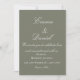Celebrate your love story with this Green Simple Elegant Photo Wedding Invitation, featuring a clean, timeless layout designed to highlight your favorite couple photo. The soft green background paired with modern typography creates a fresh and sophisticated look. Perfect for minimalist, garden, or modern weddings — this fully customizable template allows you to personalize the text, photo, and colors to reflect your unique style.