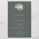 Un menu mariage de trois plats, vert gris foncé, avec bouquet/pochette de baies de neige peintes à la main et eucalyptus à l'avant et une couronne à l'arrière. Tout le texte est entièrement modifiable, et les points épars sur l'avant et l'arrière peuvent être supprimés avant de commander si vous le souhaitez. Veuillez consulter cette collection dans mon magasin pour les menus avec des arrangements floraux alternatifs, un nombre différent de cours et dans différentes tailles/couleurs/formes. Coordonner les éléments également disponibles.