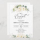 Green White Roses Engagement Party Invitation. Cette invitation de mariage élégante et élégante présente de magnifiques aquarelles peintes à la main de verdure Roses blanches. Trouvez les articles correspondants dans la Collection Mariage Watercolor Greenery White Roses.