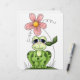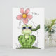 Cute grenouille souriante avec fleur rose.
