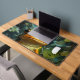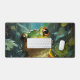 Ce tapis de bureau a une grenouille dessus.