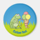 Une grenouille souriante vole un cône de glace avec sa langue. Texte personnalisé.