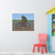 Une grenouille verte foncée portant un casquette de lierre tan plaid (ou un casquette au volant) et un sourire satisfait pédale le long d'un vélo rouge sur un chemin de terre par un mur de pierre gris recouvert de mousse sur l'image médiatique mixte sur cette affiche. Avec le ciel bleu profond au-dessus, il semble qu'il a une belle journée pour le vélo! À partir de mon numériquement d'origine créé image.
