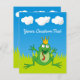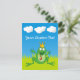 Caricature de la grenouille Prince avec couronne. Éléments arrière - plans amovibles (ciel, herbe, nuages). Texte personnalisé.