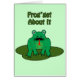 Une grenouille caricaturale verte assise sur un tapis de lis avec sa langue qui sort. Le texte ci-dessus dit "Frog'get About It"