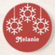 Chic et simple Falling Snowflakes Holiday Sandstone Dessous de verre doté d'un trio de snowflakes modernes et élégants. Ce dessous de verre de Noël fait un cadeau élégant. Customisez cette conception de flocon de neige en chute avec votre propre texte personnalisé.