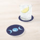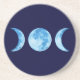 Dessous de verre en grès bleu foncé avec lune bleu clair en phases de cirage, de plénitude et de déclinaison.