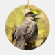 Voici un ornement qui montre un oiseau gris perché sur une branche, chantant sa chanson au monde alors qu'il copie les sons d'autres espèces d'oiseaux et les cordes ensemble pour faire sa propre chanson. Il fait aussi des prés comme un chat ! L'image s'est répétée sur le dos.