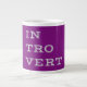 Idéal pour ceux qui aiment se recharger en passant du temps seul est cette conception de texte gris simple et élégant Introvert Mug. Ajoutez du texte et/ou changez les couleurs des arrière - plans pour une touche personnelle.