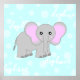 Grey / Light Blue Baby Elephant Cute Poster Print