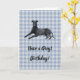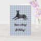 Une carte d'anniversaire pour tous ceux qui aiment les greyhounds ! Cette carte est dotée d'un magnifique lévrier noir avec un arrière - plan en vichy bleu. Les messages sont personnalisables afin que vous puissiez les personnaliser.