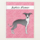 Illustration originale de Destei d'une mignonne couleur bleue et blanche italien Greyhound / Iggy race chien sur une couleur arrière - plan rose avec un motif de coeurs de différentes tailles. Il y a aussi une zone de texte personnalisable pour le texte personnalisé.