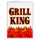 Grill King drôle barbecue disant dans une police flamboyante occidentale pour cuisiniers et cuisiniers. Avec l'art graphique des flammes rouge et orange au fond du design. Un autre original de MomsRetro.