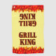 Grill King drôle de cuisine disant dans une police flamboyante occidentale pour cuisiniers et cuisiniers. Avec un art graphique de flammes rouges et orange au bout de la serviette - parfait pour accrocher votre barbecue.