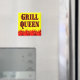 Grill Queen drôle barbecue disant dans une police flamboyante occidentale pour cuisiniers et cuisiniers. Avec l'art graphique des flammes rouge et orange au fond du design. Un autre original de MomsRetro.