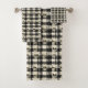 Grille de crâne - Géométrie Macabre dans Serviette de bain monochrome Ensemble Une toile à damiers noir et blanc foncé devient une scène pour les crânes humains et les formes cylindriques fantomatiques, disposées en symétrie hypnotique. Chaque crâne est rendu avec des détails frais, tandis que les objets flous ajoutent une tension spectrale, comme des reliques oubliées ou des souvenirs scintillants. Ce motif évoque la précision gothique et la beauté troublante, idéale pour des thèmes qui explorent la mortalité, le mystère et le chaos structuré.